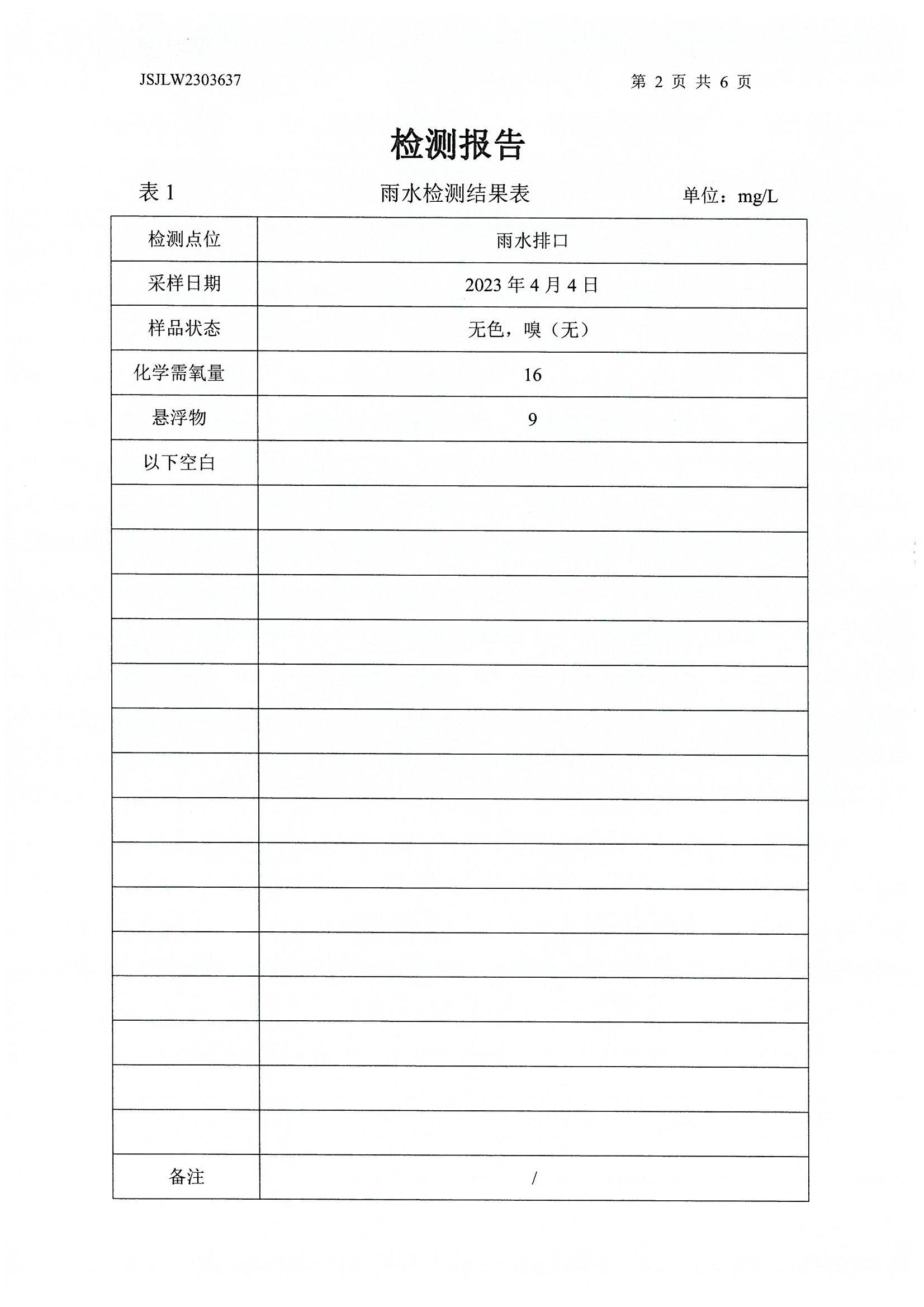 雨水、廢水檢測(cè)報(bào)告